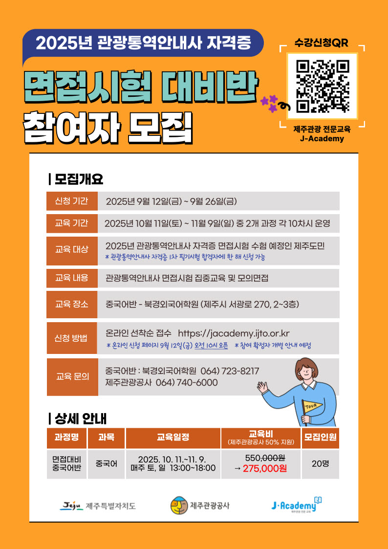 제주관광공사에서 주관하는 2025년도 중국어 관광통역안내사 면접시험대비 주말과정