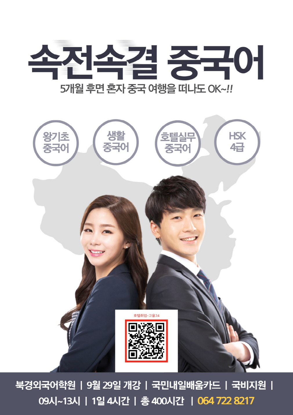 1. 중국어 입문과정 ; 0929~0228, 1일 4시간, 총 400시간. 수료하면 중국여행 혼자 다녀오셔도 됩니다. 요즘 도전하시는 분들이 계속 늘어나고 있습니다.